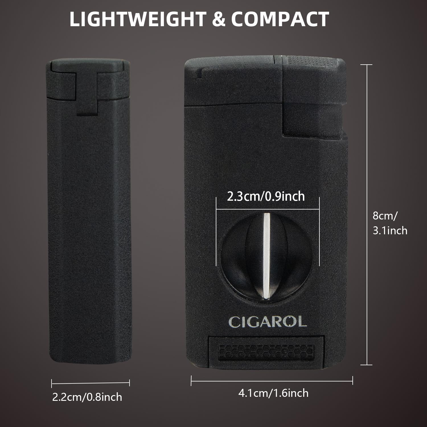 Cigarol 3-in-1 Sturmfeuerzeug mit Edelstahl-V-Schneider, Nachfüllbar, Winddicht, Schwarz