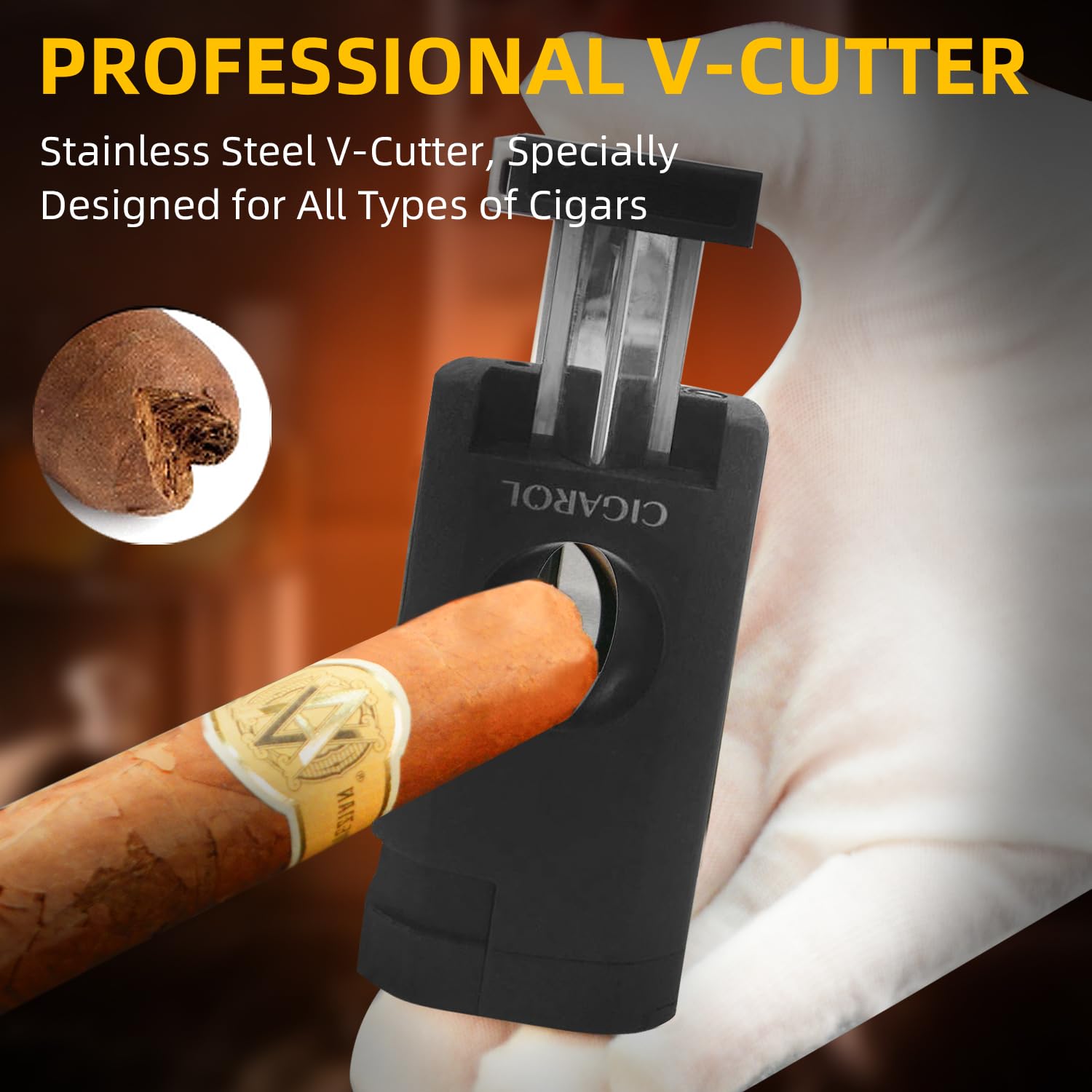 - 3-in-1 Design: Feuerzeug, Edelstahl-V-Schneider und rutschfeste Zigarre